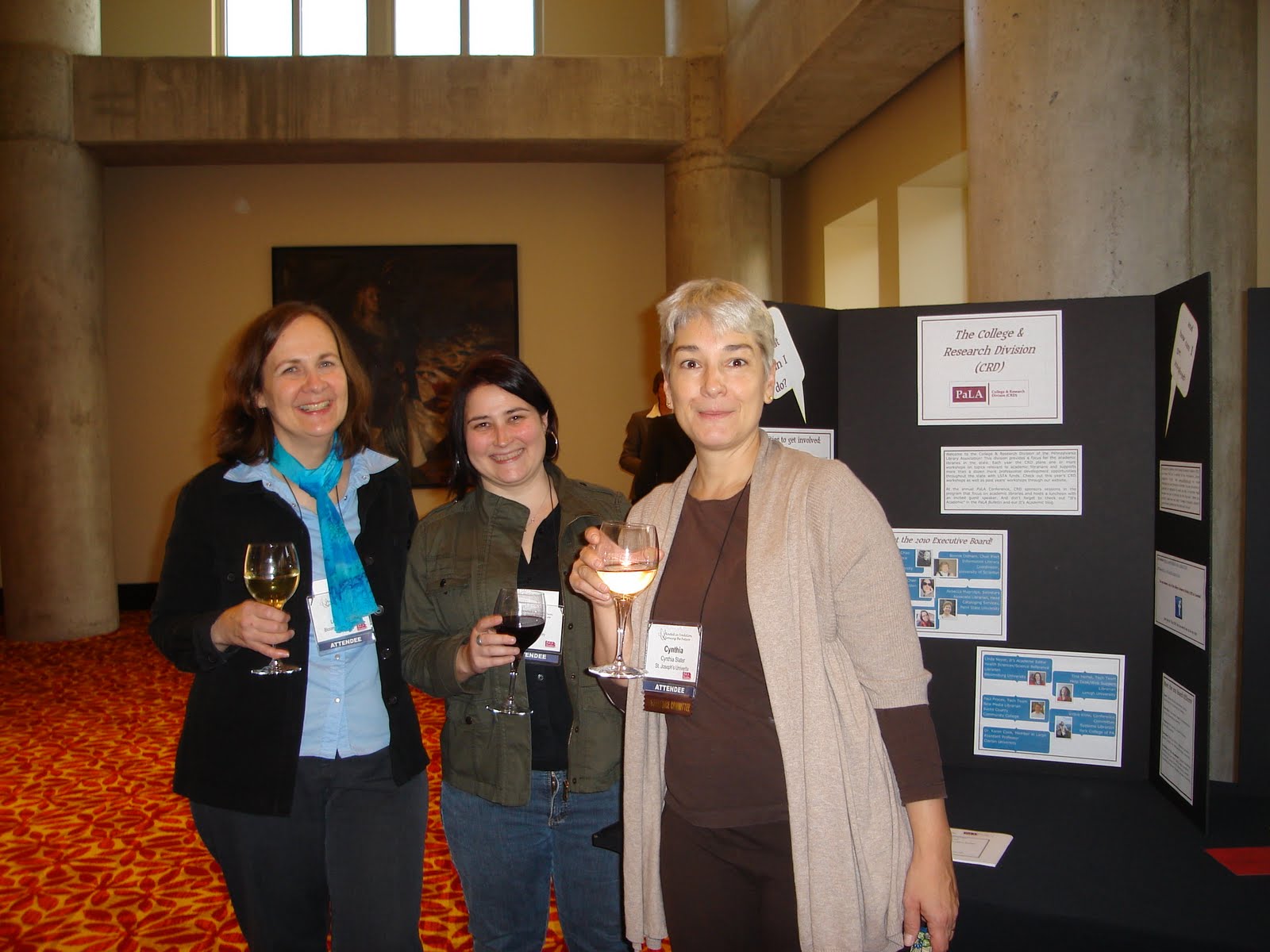 >CRD Board Members Linda Neyer, 2011 Vice Chair, Amy Deuink, 2009 Chair, and Cynthia Slater, 2010 Chair get together at the New Member Reception at the PaLA 2010 Annual Conference in Lancaster.