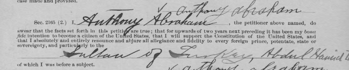 Many of these documents go back to the 1800’s when most countries were still led by royalty. It’s interesting to read someone renouncing their allegiance to kings or queens. Here is a man named Anthony Abraham applying for citizenship and renouncing his loyalty to the Sultan of Turkey in 1905. Imagine the adventures he must have had to get all the way to Cambria County Pennsylvania!