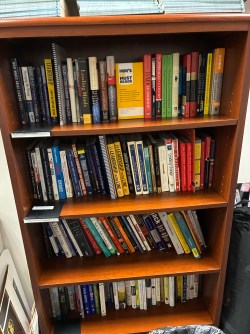 During our meeting, Julia and I took a look at the collection (pictured). Julia said that the library didn’t get a lot of use and hadn’t been expanded in quite some time. Julia expressed a desire to connect the Institute’s library with the Pitt Libraries’ holdings on similar topics. This immediately brought to mind a then-recent call by my some of my colleagues for candidates for pilot PittCat Collections. PittCat is our version of ExLibris’ Primo VE discovery layer; Primo VE Collections allow libraries to increase item visibility. Collections are an optional feature, so it would take some work to get them started. Since the Institute library would be an excellent candidate for a Collection, I began a discussion with my colleagues to start the process.