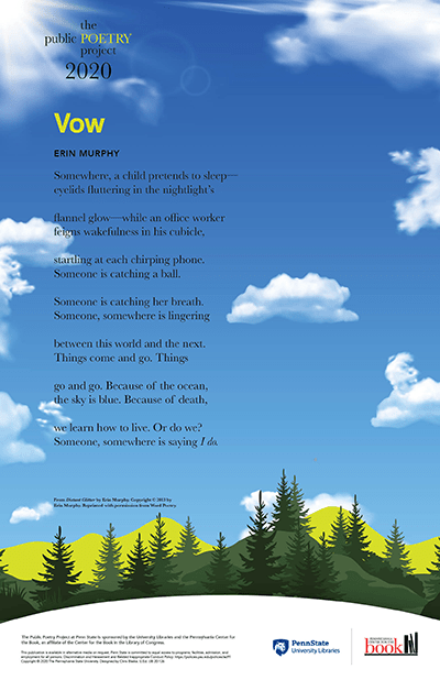 If several readthroughs of the poem only occupy part of the forth recommendation of 10-15 minutes of reflection, a video of Murphy reading “Vow” is available on the PACFTB’s YouTube channel, which houses a variety of craft talks and presentations that document awards and programs.